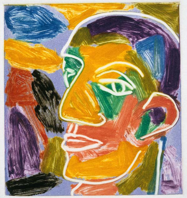 Head on Blue V, 1993 monotype, 5.3″ x 4.8″